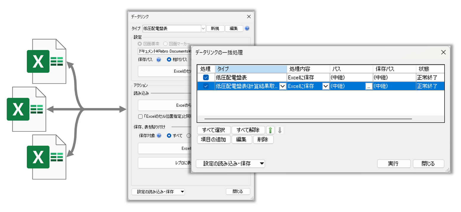 従来は、1ファイルずつの処理でしたが、複数ファイル一括で行えるようにします。これによりプロパティを出力し、Excel上で複雑な計算や処理を行い、その結果を読み込むという一連の処理を連続して行えるようになります。