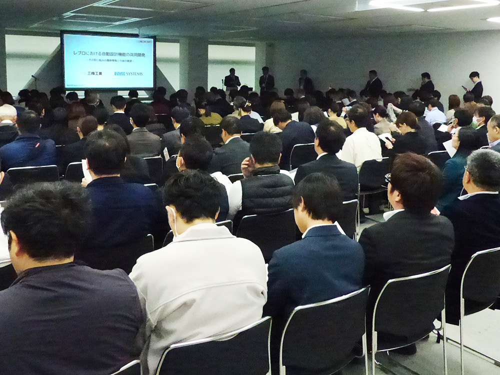 本テクニカルフォーラムでは、三機工業BIM推進部長である石丸氏と当社開発部の古賀より、「レブロにおける自動設計機能の共同開発」をテーマに講演いたしました。講演内では三機工業とNYKシステムズの協業過程や、レブロにおける自動設計機能共同開発の最新情報と今後の展望について発表しました。