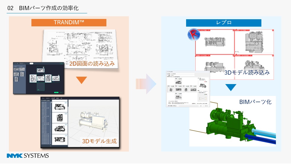 本システムの活用により、3Dモデル生成に要する工数を最大90%削減できる見込みで、生成した3Dモデルは、レブロにも直接取り込めるよう開発を進めております。